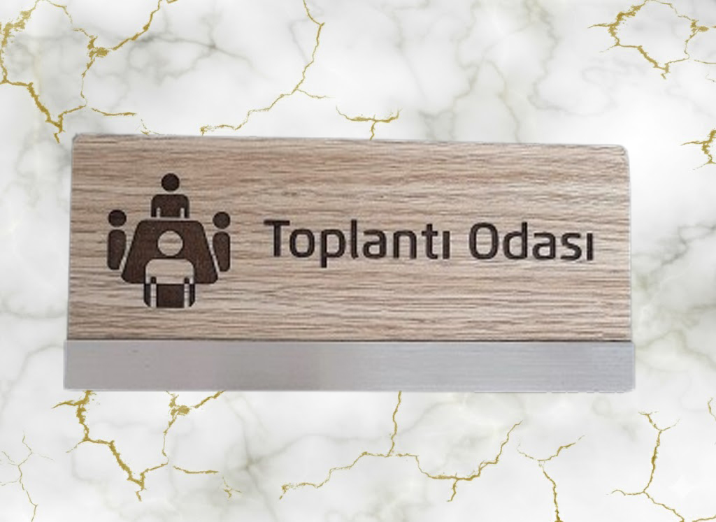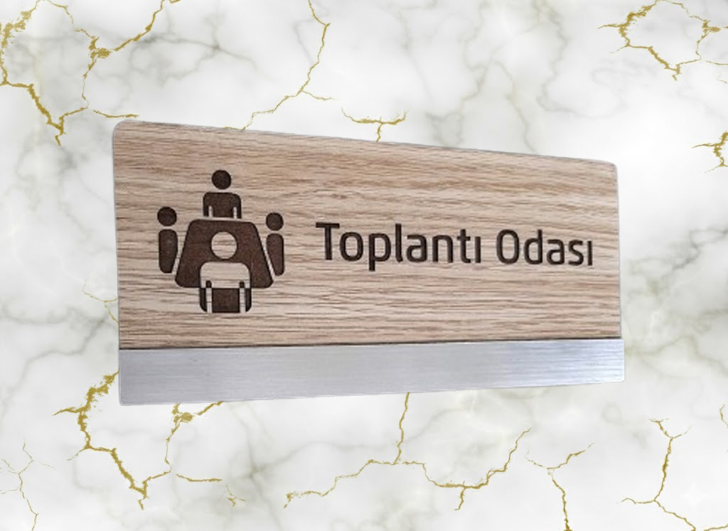 Toplantı odalarının giriş kısmına yerleştirilen, oda ismini veya salonun kullanım amacını belirten tabela türüne ahşap toplantı odası kapı isimliği denir. Genellikle masif ahşap, MDF ahşap kaplama, doğal ağaç dilimi veya özel kesim ahşap panellerden üretilir. Üzerinde yer alan yazılar genellikle lazer kazıma, UV baskı veya oyma işçiliğiyle yapılır. Kurumsal logolar, oda numaraları veya bölüm adları da eklenebilir.
